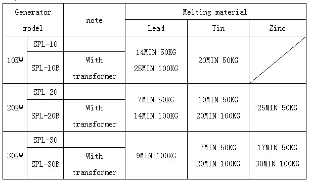 Using air cooled induction heating generator to melt low melting point metal or alloy such as Zinc, Tin, and Lead with stainless steel or steel melting pot. Refer to the picture below: