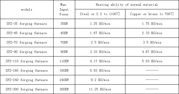M.F. forging furnace is used for the heating of bars and rods larger than Φ12, the material can be steel, stainless steel, copper, brass ,aluminium and so on.  The heating can be the whole rod, end of the rod or dle part of the rod.