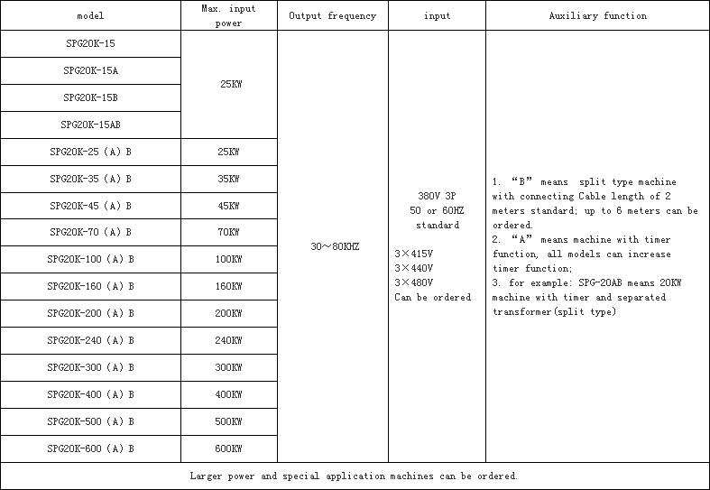 1. Feature on High frequency: SPG20K machines are recommended to work up to 60KHZ with full power.
