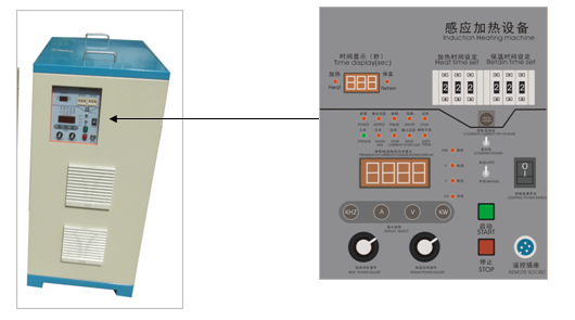 中頻加熱多數是長時間或連續的加熱過程,所以常規中頻多數采用普通的中頻面板,如下圖。這種面板操作簡單,只有啟動、停止按鈕和功率調節旋鈕,進行簡單操作。