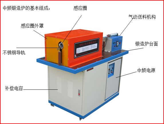 包括中頻電源、補(bǔ)償電容箱及工作臺(tái)、感應(yīng)圈、送料機(jī)構(gòu)等。根據(jù)不同的應(yīng)用要求,還可能包括紅外測溫儀,控溫儀及送料、卷料等裝置;