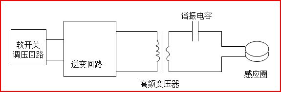 此系列設備采用串聯(lián)諧振電路,諧振后通過高頻變壓器輸出低電壓、大電流的高頻電源。諧振結(jié)構(gòu)如圖: