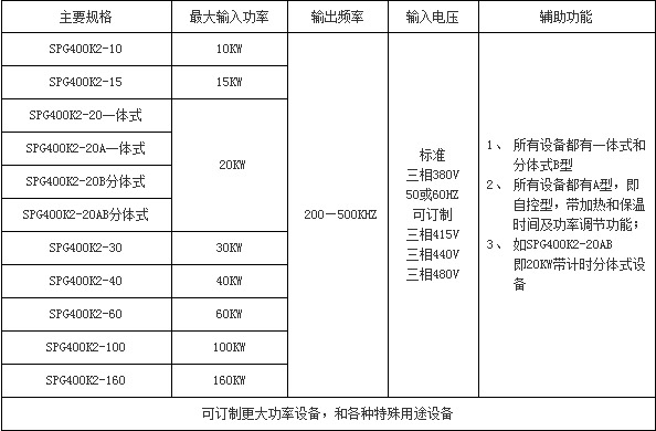 2、 在分體式設備中,高頻電源(主機)與高頻變壓器(分機)分離,主—分機間連線2米長; 但主-分機連線會降低設備的輸出頻率,產(chǎn)生一定的損耗。